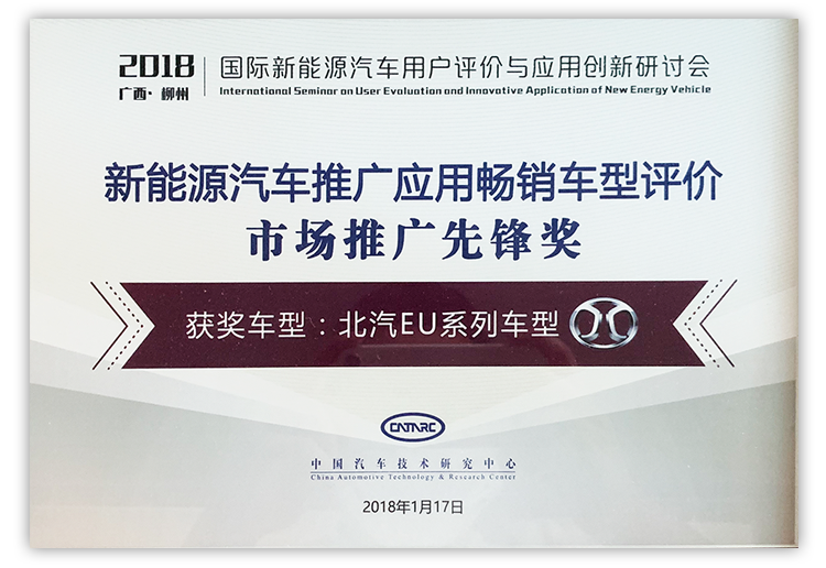 新能源汽车推广应用畅销车型评价市场推广先锋奖