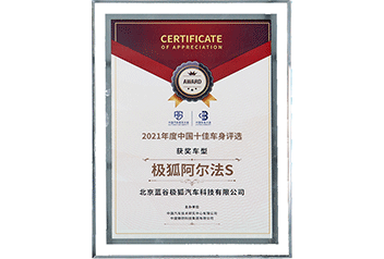 极狐阿尔法S中国十佳车身和最佳材料奖
