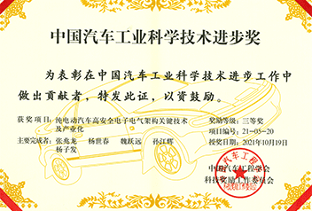 中国汽车工业科技进步奖三等奖(纯电动汽车高安全电子电气架构关键技术及产业化)