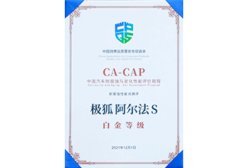极狐阿尔法S获得中国汽车耐腐蚀与老化性能评价(CA-CAP)测评结果5星好评